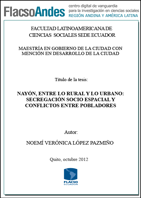 El trabajo que se presentará en las siguientes páginas, es un estudio acerca de la segregación socio-espacial y residencial existente en una de las parroquias suburbanas del Distrito Metropolitano de Quito: Santa Ana de Nayón. La investigación presentará causas y consecuencias de dicho fenómeno, entre estas los conflictos suscitados entre pobladores autóctonos y nuevos residentes, y como esto está relacionado con el crecimiento de la urbe. En primer lugar se exponen, ciertos aportes teóricos basados en las dos escuelas teóricas urbanas clásicas, la de Chicago y la Francesa. Aquí se da una breve explicación del porqué estas visiones clásicas son de utilidad para mostrar como han evolucionado las rupturas y continuidades en la transformación de las urbes, pero también se especifica, que aunque estas escuelas son válidas por sus grandes aportes, han sido ampliamente criticadas desde diferentes corrientes del pensamiento. Además se hace un pequeño apartado que trata sobre la nueva concepción que se tiene del espacio, no como mero soporte material, sino también como parte fundamental de los fenómenos sociales. A partir de esto, se genera una discusión teórica de América Latina que trata el fenómeno de la segregación socio espacial, y nos da una visión más cercana a nuestra realidad urbana. También se hace una reflexión acerca de los estudios que se realizan de este fenómeno urbano en Latinoamérica, poniendo en claro que aunque este se encuentre emergente en los debates académicos y en las agendas públicas, se lo ha estudiado desde el punto de vista socio económico y bajo un enfoque estructuralista, dejando de lado otros aspectos como lo político y cultural. Posteriormente se exterioriza, como el mercado del suelo se ha convertido en un ente regulador y protagonista del proceso de segregación en Latinoamérica, y se pone en relieve como los enclaves urbanos se han convertido en generadores de fronteras entre los urbanitas, convirtiéndolos en uno de los ejes de la (de)construcción de la ciudad.