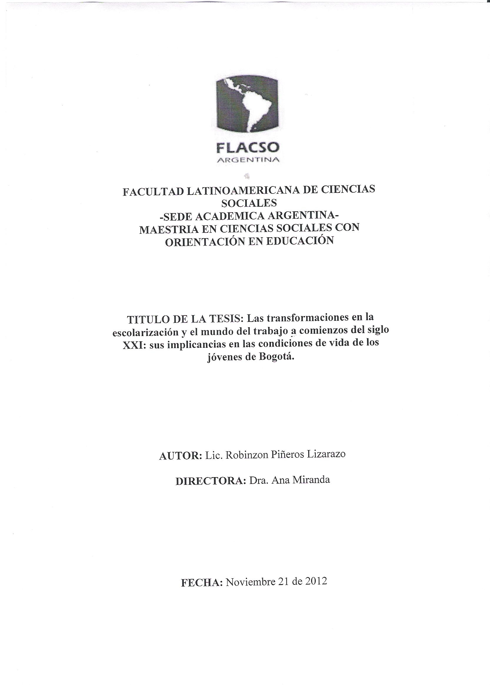Las transformaciones en la escolarización y el mundo del trabajo a comienzos del siglo XXI : sus implicancias en las condiciones de vida de los jóvenes en Bogotá