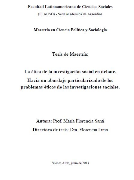 A través de esta tesis me propongo contribuir a este debate y propiciar la reflexión de los aspectos éticos de las investigaciones sociales teniendo en cuenta las características particulares de estas disciplinas.