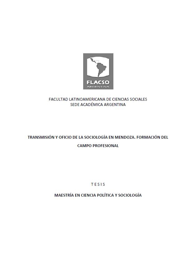 Nuestro análisis se focaliza en el origen y los primeros años de la carrera de Sociología y de la Facultad de Ciencias Políticas y Sociales (FCPyS), su institucionalización e historia. Los registros nos muestran que existen fechas, personajes y situaciones claves en este proceso. Algunas de las marcas que intentaremos describir para entender el campo de la formación profesional de la Sociología en Mendoza son: la enseñanza de la Sociología en la Universidad antes de constituirse como carrera; el peronismo y la Constitución Nacional de 1949; el primer plan de estudios en Ciencias Políticas y Sociales; las disciplinas y los profesores que confluyeron es esa primera formación, la especialización de posgrado FLACSO en Chile en los años sesenta; la actividad política y curricular de los años ´70; los cambios de planes de estudio anteriores a la dictadura de 1976 y la dispersión de profesores y estudiantes, que las aulas universitarias no terminarían de recuperar aún hoy.