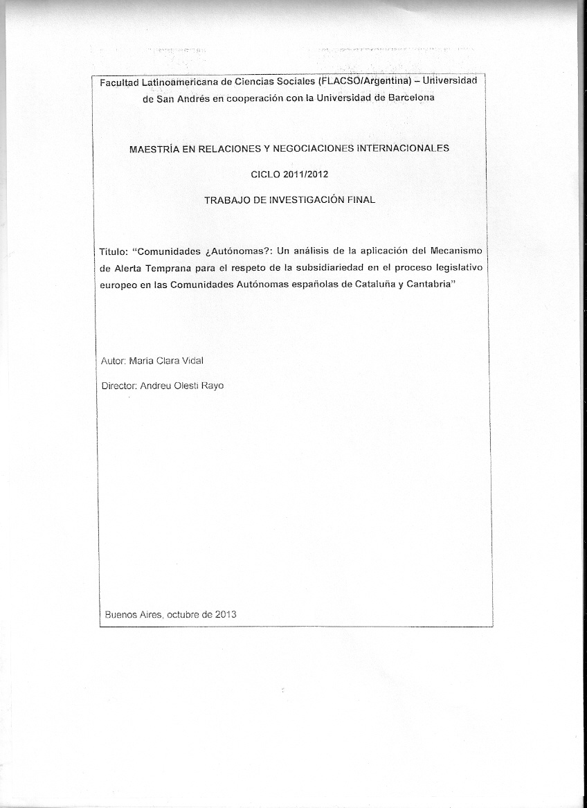 y si éste efectivamente ha logrado incrementar la participación de tales Comunidades en el proceso de elaboración de normas europeas en lo que a resguardo de la subsidiariedad se refiere. Se resalta que en el presente trabajo, y con el objetivo de analizar si han existido diferencias en la aplicación del Mecanismo en función del grado de autonomía, las Comunidades seleccionadas se han tomado como “casos testigo” del grupo de Comunidades que integran de acuerdo a su grado de autonomía: Cataluña (como modelo de las Comunidades de mayor grado) y Cantabria (como modelo de las de menor grado de autonomía).