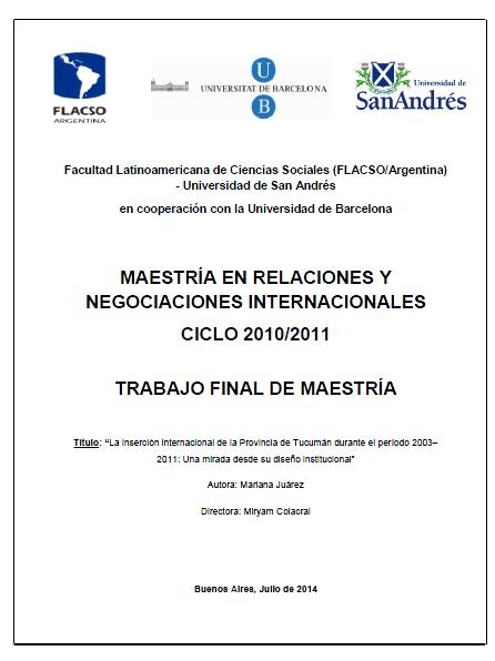 Durante los años 80 y con mayor impulso y visibilidad a partir de los 90, tras darse ciertas condiciones que favorecieron su desarrollo, comenzó a configurarse entre las provincias argentinas, especialmente ente aquéllas mejor dotadas en recursos y ubicadas geográficamente en territorios transfronterizos, una creciente participación en las relaciones internacionales. Este novedoso accionar internacional fue manifestándose en distintas áreas y con múltiples propósitos, desplegándose diferentes iniciativas con resultados dispares dependiendo cada caso. En este escenario, el presente trabajo de investigación toma como referencia al gobierno de la provincia de Tucumán, aproximándose a la gestión externa desarrollada por el mismo durante el período 2003-2011, desde una mirada que toma como eje su diseño institucional. A partir de allí, se analiza a Tucumán en su papel de actor subnacional internacional, haciendo un repaso por su experiencia, las iniciativas encaradas y los resultados obtenidos. El objetivo fue señalar cómo el diseño institucional de la provincia y las múltiples variantes ensayadas en este sentido durante el período bajo estudio, han contribuido a fortalecer su accionar exterior, consolidando la presencia de Tucumán en la arena internacional.