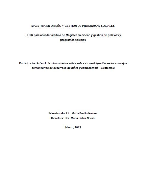 Participación infantil : la mirada de las niñas sobre su participación en los consejos comunitarios de desarrollo de niñez y adolescencia, Guatemala