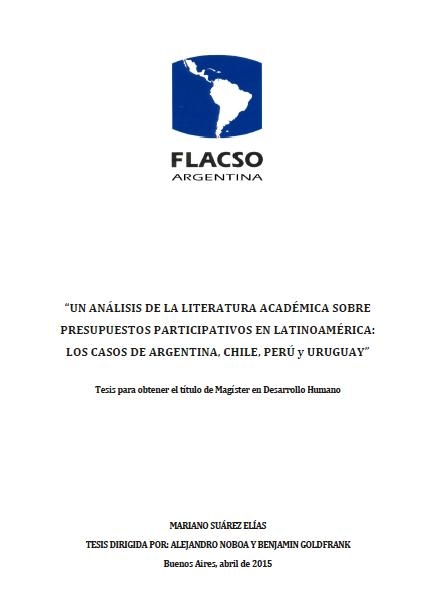 La investigación que aquí se presenta pretende realizar un estado de la cuestión referido a la participación ciudadana en el PP, que actualmente es la política participativa de mayor popularidad y difusión a nivel mundial. La propuesta busca indagar la forma como la literatura académica ha abordado la participación en los PP analizado las principales perspectivas teóricas y los hallazgos empíricos generados en los trabajos referidos a la temática en Argentina, Chile, Perú y Uruguay. La bibliografía se leerá realizando una mirada crítica desde el enfoque del desarrollo humano. Se asume que habiendo pasado más de dos décadas de las primeras experiencias de PP, resulta fundamental el esfuerzo de integrar el conocimiento existente en la materia, problematizando sobre las producciones académicas que han acompañado este proceso. Está investigación busca sistematizar y organizar la variada literatura existente en la materia de manera de lograr dimensionar las líneas de trabajos desarrolladas.