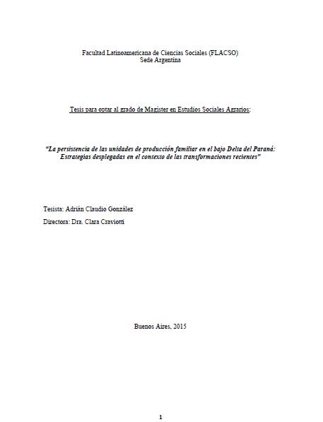 La persistencia de las unidades de producción familiar en el bajo delta del Paraná : estrategias desplegadas en el contexto de las transformaciones recientes