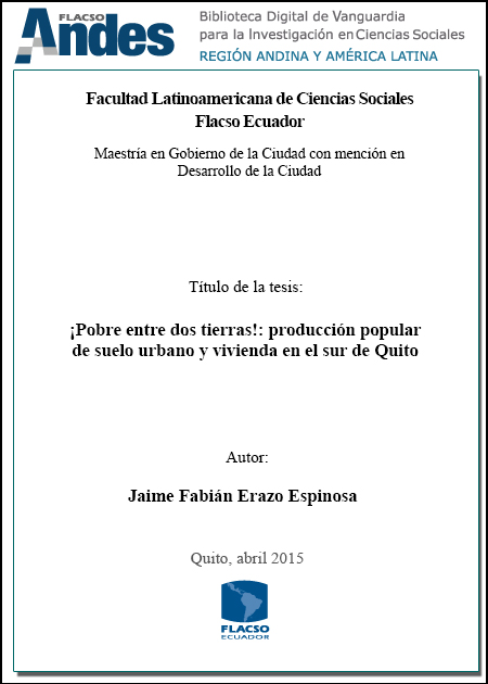 ¡Pobre entre dos tierras!: producción popular de suelo urbano y vivienda en el sur de Quito.