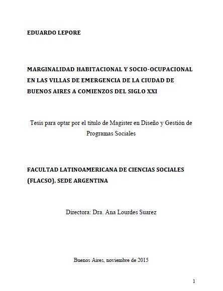 El objetivo general de la investigación es realizar una caracterización empírica de las actuales condiciones de habitación e inserción socio-ocupacional de la población residente en las villas de emergencia de la Ciudad de Buenos Aires. El propósito de la misma es aportar a un conocimiento detallado del fenómeno de la marginalidad habitacional y socio-ocupacional en dichos asentamientos a comienzos del siglo XXI. Asimismo, tres son los objetivos específicos que orientan el trabajo: 1) caracterizar las condiciones habitacionales de la población en villas de emergencia, así como su acceso a los servicios urbanos en comparación con el resto de la población de la Ciudad de Buenos Aires; 2) medir el nivel y la calidad de la participación laboral de la mano de obra de las villas de emergencia y establecer en qué medida esa participación se encuentra condicionada por la residencia en barrios marginales; 3) caracterizar las condiciones de inserción socio-ocupacional de la mano de obra de las villas de emergencia y determinar si expresan situaciones de segregación ocupacional.