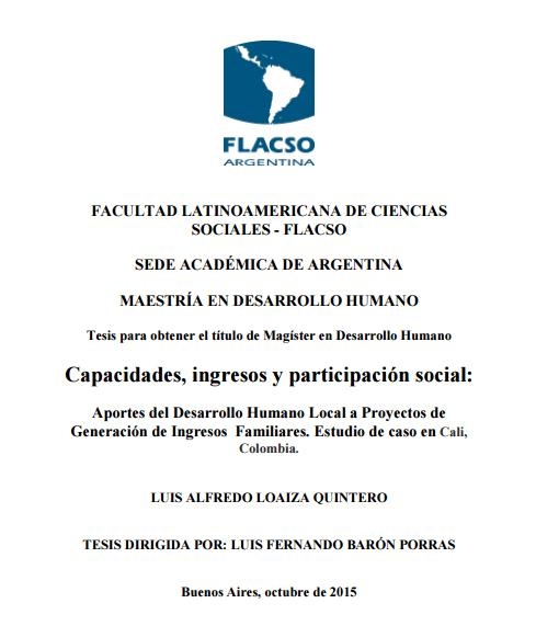 Capacidades, ingresos y participación social : aportes del desarrollo humano local a proyectos de generación de ingresos familiares. Estudio de caso en Cali, Colombia