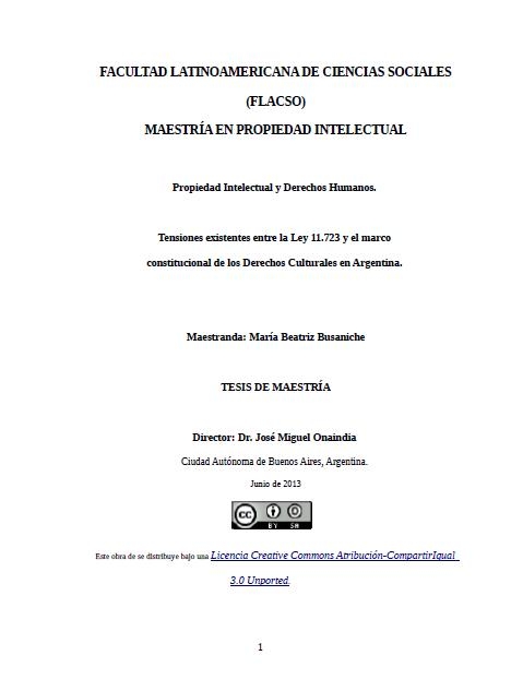 Propiedad intelectual y derechos humanos : tensiones existentes entre la Ley 11.723 y el marco constitucional de los derechos culturales en Argentina /