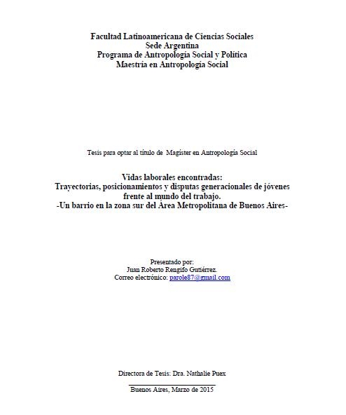 de sectores populares del partido de Lanús (Provincia de Buenos Aires) mantuvieron con relación al trabajo. Se sostiene que el proceso generacional de estos actores estuvo relacionado tanto con los contextos y tiempos históricos, sociales y biográficos vinculados al trabajo, como con las formas de sociabilidad familiar intergeneracional y generacional que se entretejieron desde la niñez, en la década de los noventa del siglo XX, hasta la juventud, en época actual.Indaga sobre las formas en que, dentro del contexto enunciado, se disputan, los