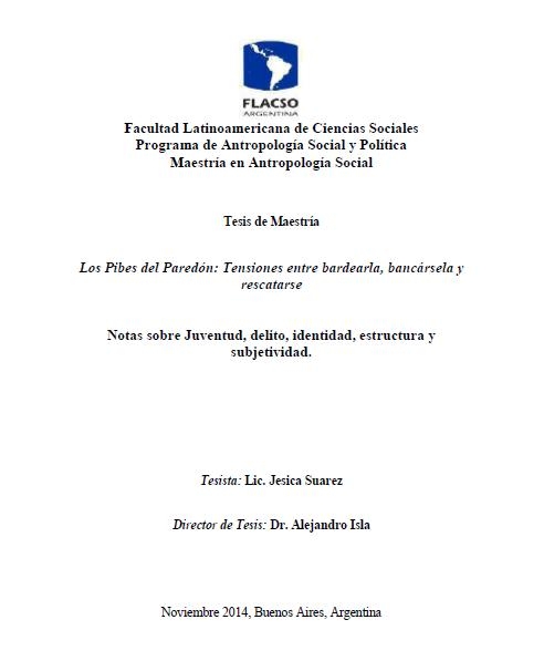 La hipótesis principal de la presente tesis es que tanto el ingreso al delito como la posibilidad de organizar trayectorias alternativas van a estar vinculadas a factores estructurales de tipo sociales como de orden subjetivo. En las historias se pueden situar aspectos que tienen que ver con el espertar adolescente en un contexto de pobreza y vulneración en un mundo guiado por el consumo global, como así también factores disruptivos en las trayectorias co
