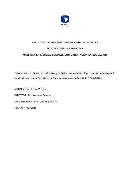 Estudiantes y política de acreditación : una mirada desde lo local : el caso de la Facultad de Ciencias Médicas de la UNLP 2001- 2010