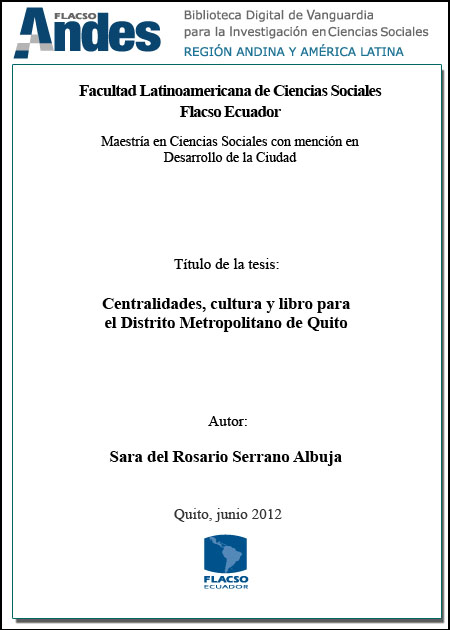 Centralidades, cultura y libro para el Distrito Metropolitano de Quito.