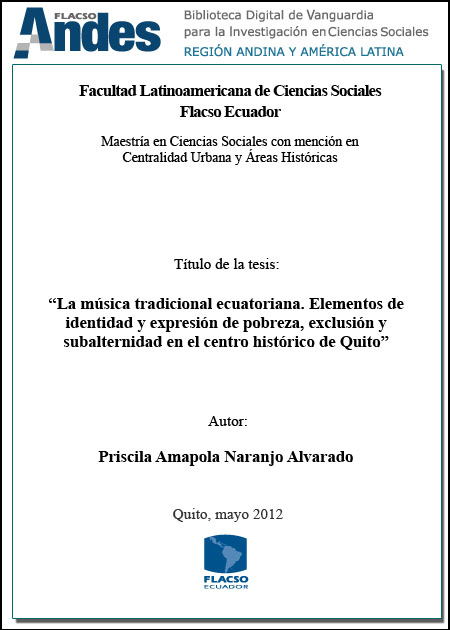 "La música tradicional ecuatoriana. Elementos de identidad y expresión de pobreza, exclusión y subalternidad en el centro histórico de Quito".