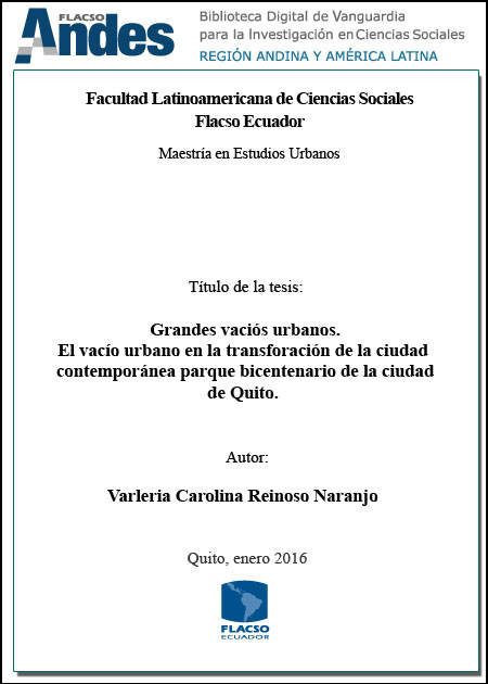 La ciudad de Quito actualmente enfrenta la salida del aeropuerto Mariscal Sucre, que por muchos años influyó fuertemente en el crecimiento y densificación de la ciudad, dejando un vacío urbano, espacio de promesa y expectativa.