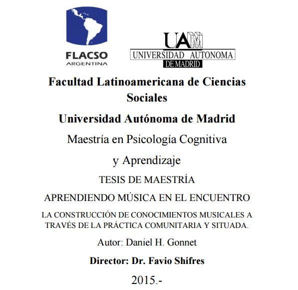El presente trabajo tiene por objetivo principal presentar diversas modalidades sociales que surgen del encuentro como espacios privilegiados para la construcción de conocimiento musical. La primera parte revisita ontologías hegemónicas en educación musical caracterizando sus modelos y las categorías de pensamiento que de éstas derivan. Simultáneamente analiza de qué modo éstas matrices invisibilizan la validez de otras, confinándolas a la otredad. En la misma sección, se explicitan otras ontologías como posibles para nutrir la educación musical. Los enfoques sociohistóricos situados en la práctica (Vigotsky, 2001; Rogoff, 1997) y las ontologías de la acción en música que se inclinan en favor de su función social, siendo en ellas la participación un concepto clave (Small, 1999, Turino, 2008, Miñana Blasco, 2012). Ofrecen alternativas para justipreciar la diversidad de modalidades de construcción de conocimiento musical vivas en las comunidades. Estas alternativas muestran una desobediencia en términos epistémicos a los cánones hegemónicos (Mignolo, 2010) y promueven el ejercicio de una justicia cognitiva desde las epistemologías del sur (de Sousa Santos, 2009). La segunda sección, desde un enfoque esencialmente etnográfico, presenta una diversidad de procesos de construcción de conocimientos musicales, de naturaleza asistemática, no instruccional, asentados en lógicas de encuentro social, comunitarias y colectivas.